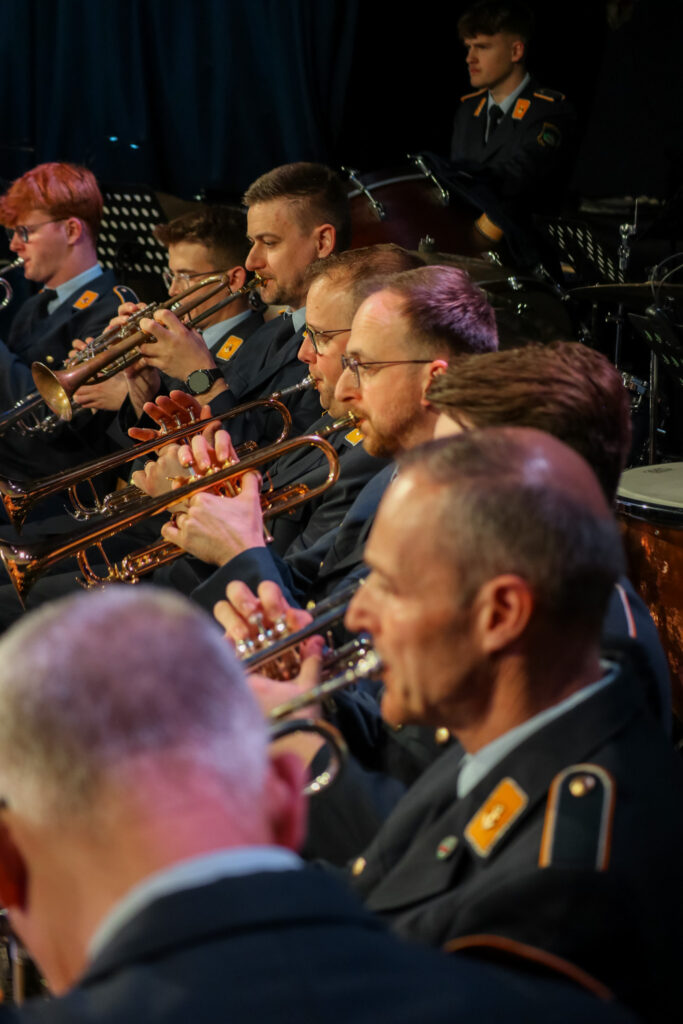 Nach der Pause holte „Rush“ von Samuel R. Hazo das Publikum mit treibenden Rhythmen und großer klanglicher Intensität zurück aus der Pause. „Perthshire Majesty“, ebenfalls von Hazo aber von absolut gegensätzlichem Charakter, entfaltete eine von schottischen Einflüssen geprägte majestätische Klanglandschaft. Im folgenden „Lord Tullamore“ von Carl Wittrock präsentierte das Orchester ein schwungvolles Werk mit irisch-folkloristischem Charakter, das durch seine rhythmische Prägnanz und Spielfreude überzeugte. Mit „A Million Dreams“ von Benj aus dem Film „The Greatest Showman“, gesungen von Lea Wurm und Larissa Solbach, sowie einem Arrangement der Musik derBeatles kamen Pop-Fans voll auf ihre Kosten. Die Zugaben, „Bohemian Rhapsody“ von Queen sowie der Marsch „Treu zur Fahne“ bildeten den Abschluss des abwechslungsreichen Konzerts.