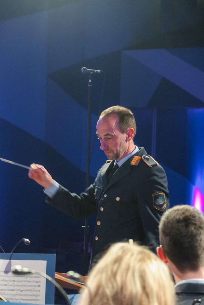 Zum Auftakt setzte die „Festive Overture“ von Dmitri Schostakowitsch mit strahlenden Fanfaren und energiegeladenen Passagen einen festlichen Rahmen für das Jubiläum. Anschließend zeigten die Musikerinnen und Musiker unter der Leitung von Dirigent Marc Siewer in den Märschen „Jubelklänge“, dem zum 100-jährigen Jubiläum beauftragen „Gerlinger Wind“, sowie der Filmmusik „Reunion and Finale“ aus dem Film „Gettysburg“, dass sie die Emotionen von energetische Passagen, schnelle Marschrhythmen und berührenden Melodiebögen gleichermaßen auf das Publikum übertragen können.